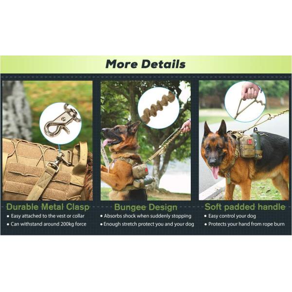 Durable Nylon Bungee Dog Leash Quick Release Military Dog Leash Lead