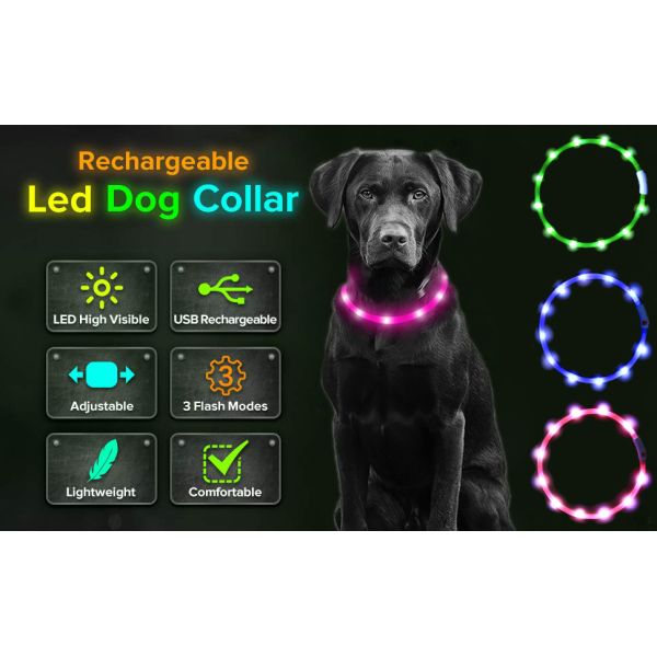 LED Dog Collar USB Rechargeable Silicone Cuttable Light Up Safety Dog Necklace Lights for Your Small Medium Large Dogs