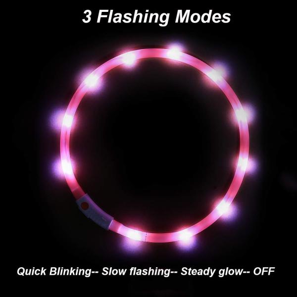 LED Dog Collar USB Rechargeable Glowing Pet Collar Durable&Flexible 360 Degree Visibility